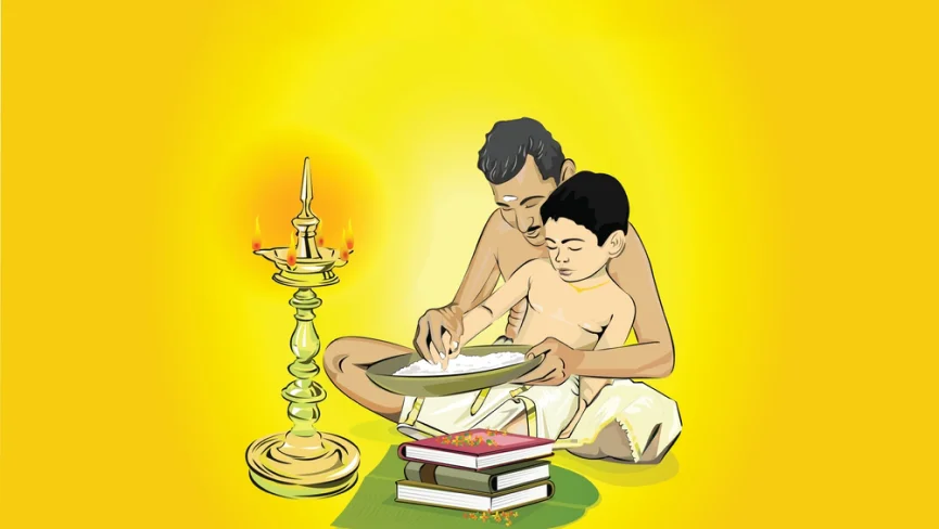 Aksharabyasam symbolizes the spiritual beginning of education. According to tradition: